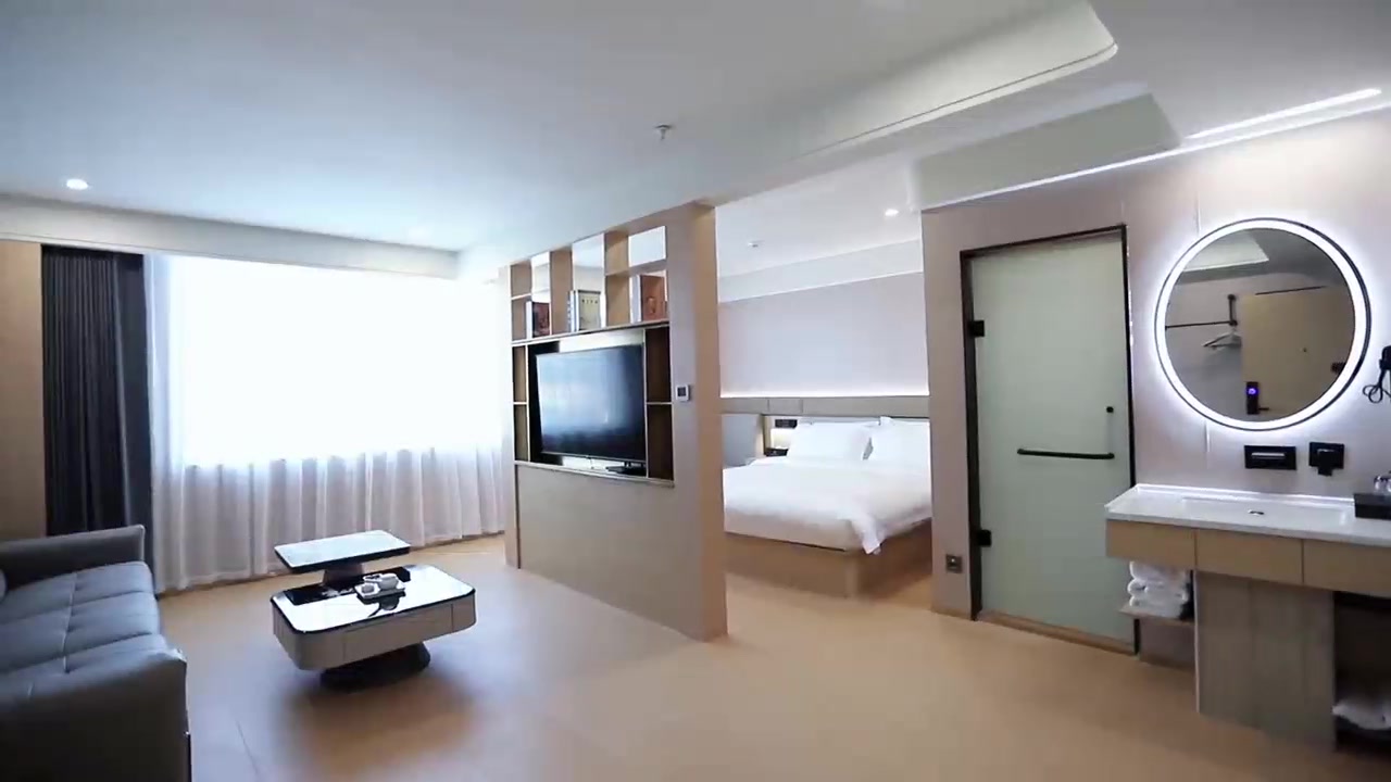 丽呈轻界酒店(济宁梁山风景区店) 枕水泊梁山而居,丽呈轻界酒店坐落于山东省济宁市梁山县水泊街道核心(水泊南路与独山路北150米),交通便利,地理位置优越。距梁山汽车客运站0.5公里,本地征信楼商超1公里,周边吃饭、娱乐丰富,酒店毗邻闻名遇迩的水泊梁山风景区,部分客房可远眺景区风光,让您沉浸于水浒文化的氛围之中。 客房设计现代简约,面积涵盖 20至50平方米,满足不同需求。最大亮点在于全屋智能客控系统,灯光、空调、窗帘等一键掌控,将智能科技完美融入旅居细节,为您带来便捷、舒适且充满未来感的入住体验。是探索梁山、商务出行的理想下榻之选。